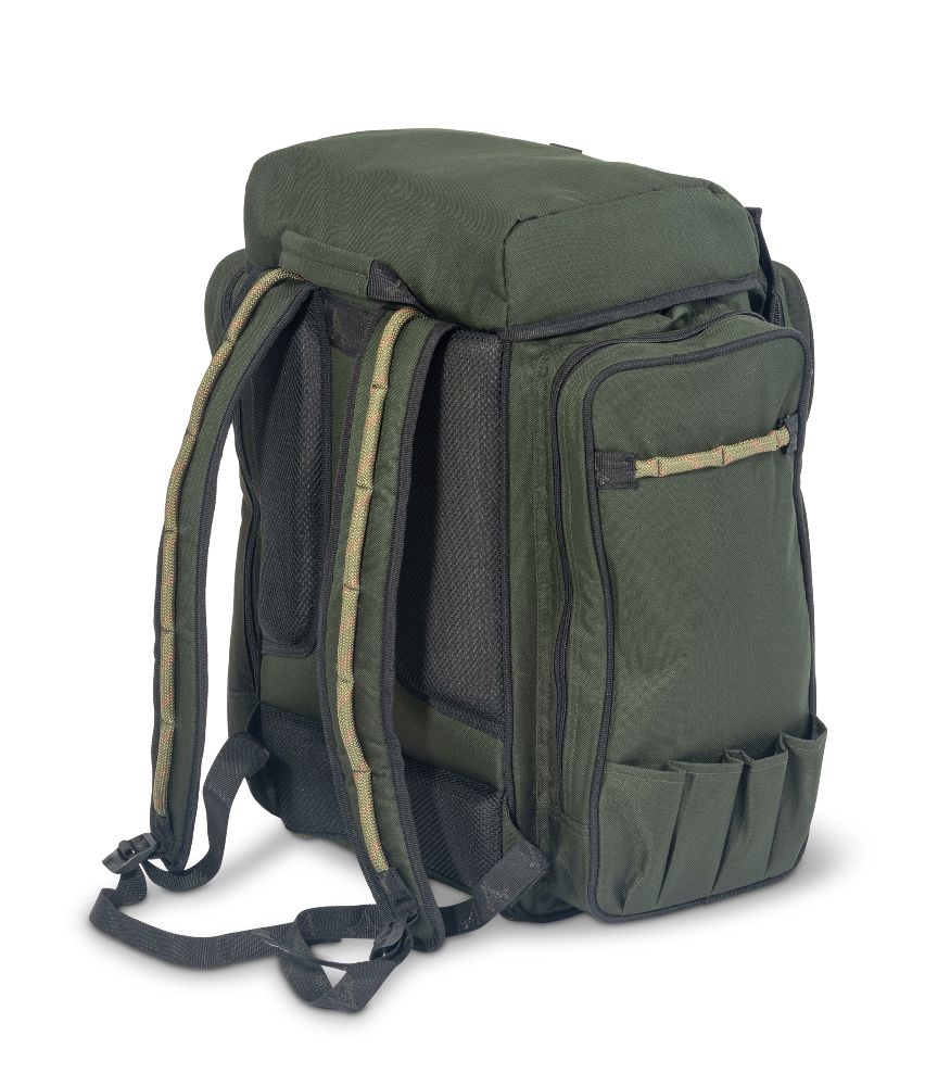 An beiden Seiten des Rucksacks befinden sich jeweils vier Bankstickhalterungen, die Ihnen helfen, Ihre Ausrüstung organisiert zu halten. Das geräumige Hauptfach lässt sich separat zuziehen und bietet ausreichend Platz für Ihre Angelausrüstung. Mit dem Connector Click System können Sie den Rucksack sicher verschließen und individuell justieren. Die aufgesetzten Taschen an den Seiten und an der Front machen dieses stylische Transportwunder unschlagbar.