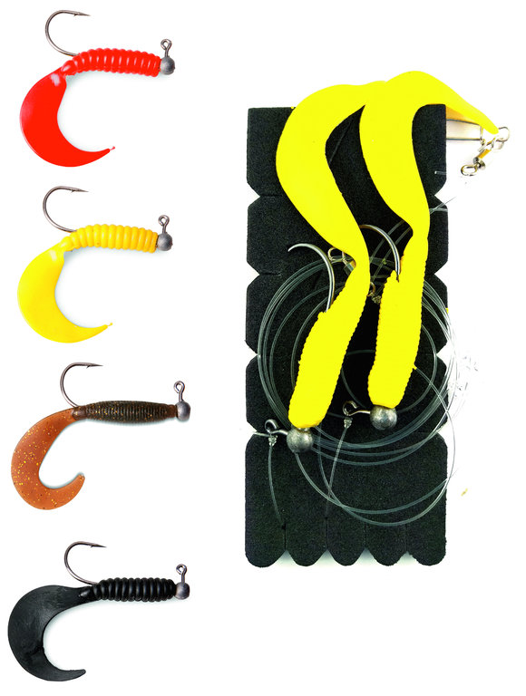 Dieses Twister-Rig besteht aus zwei Twister der gleichen Farbe, welche mit Rotationsperlen am Vorfach befestigt sind. Es wurden extra leichte Jigköpfe für ein besseres Köderspiel montiert. Verfügbar ist dieses Rig in vier verschiedenen Farben. Die Haken haben eine Größe von 2/0.