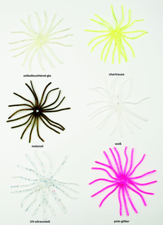 Diese super-soften und lose verpackten Tentakeln sind ideal zum Bau eigener Meeres-Systeme oder zum tunen von Pilkern. Diese Curly Skirts haben eine Gesamtlänge von ca. 12cm. Es gibt sie in 6 verschiedenen Farben.