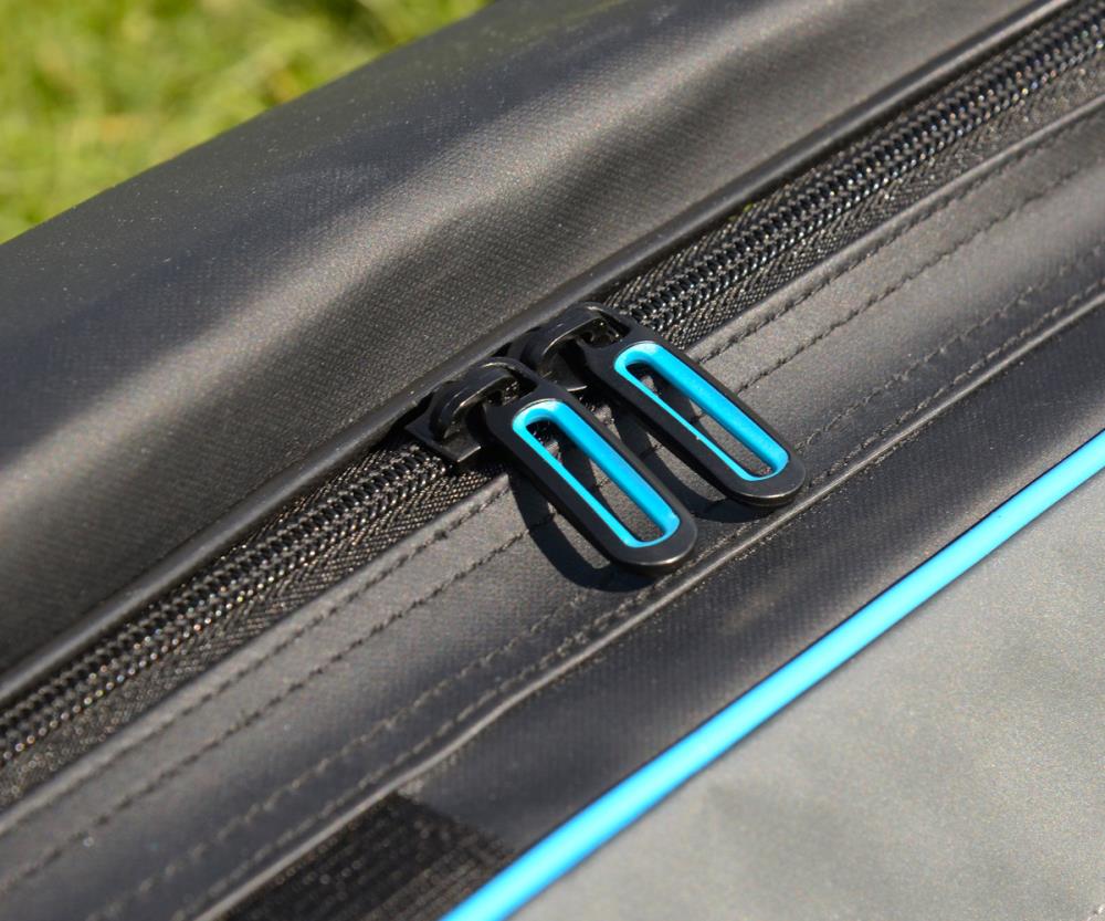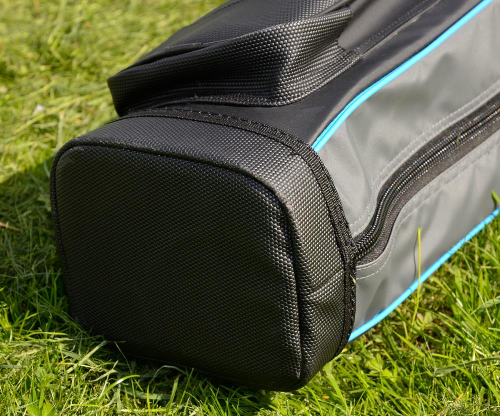 Das Blackthorne Protector Pole Case bietet dank des harten Bodens und der Polsterung am TopKit maximalen Schutz für bis zu vier Kopfruten. Der robuste Reißverschluss verläuft über die gesamte Länge und lässt sich leicht öffnen. Die Vorderseite besitzt ein hohes Fach mit langem Reißverschluss, welches sich für die Aufbewahrung zusätzlicher Materialien eignet. Das Protector Pole Case ist wie die anderen Taschen aus der Blackthorne Serie mit einem luxuriösen Schulterriemen und einem gepolsterten Griff ausgestattet.