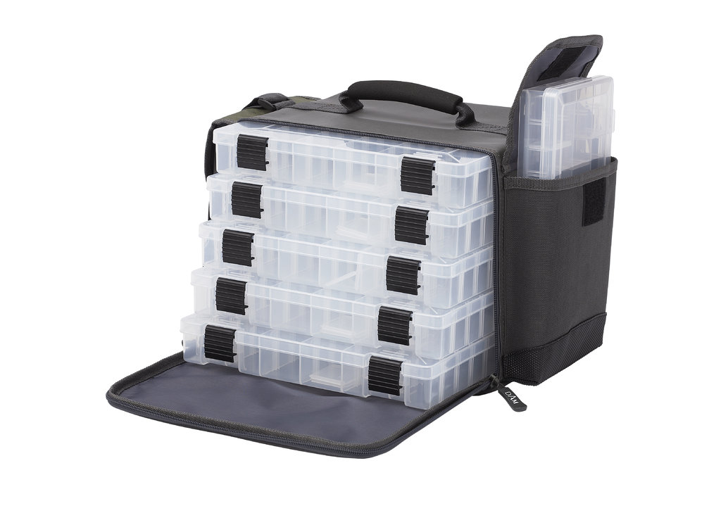 Diese Angelzubehörtaschen (Tackle Bags) gibt es in drei verschiedenen Größen von Small bis Large. Dies ist eine neue Generation von Zubehörtaschen! Neben einem modernen Design bieten diese Taschen eine unterschiedliche Anzahl von integrierten Plastikboxen für jede Art von Kunstködern und Kleinteilen. Während die kleinere und mittlere Tasche hauptsächlich für den Spinn-Angler unterwegs gedacht sind, wurde die große Tasche in erster Linie für den Bootsangler konzipiert, der häufig wesentlich mehr Ausrüstung benötigt! Die Taschen bestehen aus 100% Polyester.