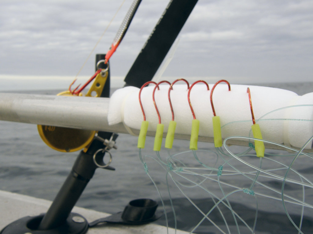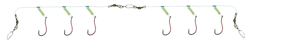 Diese Vorfächer sind speziell für den Fang von Rotbarschen konzipiert worden. Es gibt drei Versionen, zwei mit Haken und eine mit Patent Snap-Swivel. Die Haken sind im Abstand von 80cm angebracht. Die Gesamtlänge des Vorfaches beträgt 640cm. Somit kann über eine große Strecke die Wassersäule nach diesen Fischen effizient abgesucht werden. Die Vorfächer besitzen vor den Haken bzw. Wirbeln ein Stück Leuchtschlauch, um den Rotbarsch anzulocken. Es gibt diese Vorfächer mit Circle-Hook oder roten Meereshaken der Größe 3/0. Die dritte Variante bestitzt die Patent-Snap-Swivel. Dies ist von Vorteil, um flexibel auf die Gegebenheit vor Ort reagieren zu können. In diese Schnellwechselwirbel können dann individuell eigene Haken schnell befestigt werden. Bei dieser Variante lassen die Wirbel den Haken frei schweben und wackeln. Da das Vorfach 640cm lang ist, werden die Fische mit der Hand angelandet. Dafür beinhaltet das Vorfach eine Relingaufnahme für die abgehakten Haken.