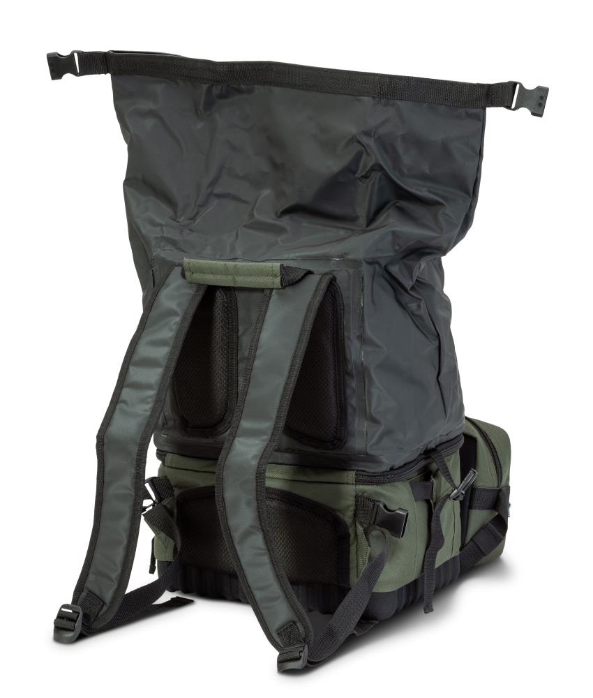 Kurz gesagt, ein Rucksack mit "Trockenabteil". Der obere Teil des Iron Claw Dry Packer ist aus Heavy Duty PVC gefertigt und mittels Rollsystem wasserdicht verschließbar. Im separaten, unteren Fach des Rucksacks befinden sich vier Boxen. zudem ist die frontseitig aufgebrachte Tasche mittels Clips abnehmbar und lässt sich durch den angebrachten Gurt auch separat als Bauchtasche einsetzen.