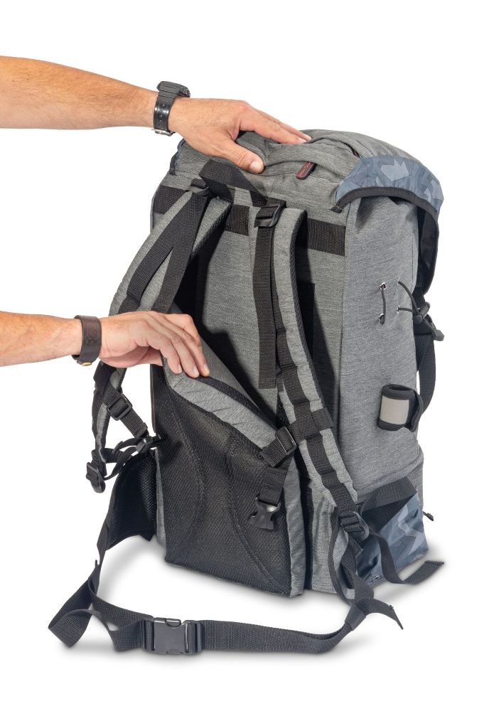 Die rücken- und nierenschonende Polsterung im Rückenbereich sorgt für angenehmen Tragekomfort und kann herausgenommen und als Sitzkissen verwendet werden. Für zusätzliche Stabilität sorgt ein eingearbeitetes, ultraleichtes Aluminiumgestell.