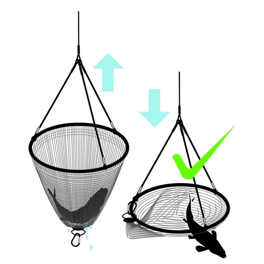 Fisch-Release-Funktion: Eine besondere Innovation ist der integrierte Clip, der es Ihnen ermöglicht, zu kleine Fische schonend zurückzusetzen. Durch das Spannen des Kescher-Netzes verhindern Sie ein Verfangen der Fische, was die Handhabung erheblich erleichtert.