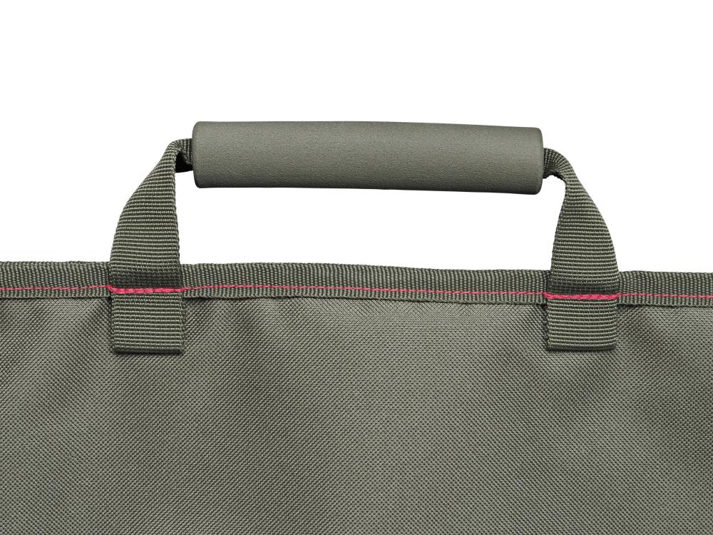 Die großen Rollenfächer bieten ausreichend Platz für Ihre Rutenrollen, während der praktische Webbing-Tragegriff den Transport erleichtert. Mit dem Quiver-Verbindungshaken können Sie das Futteral sicher an Ihrem Quiver-System befestigen.