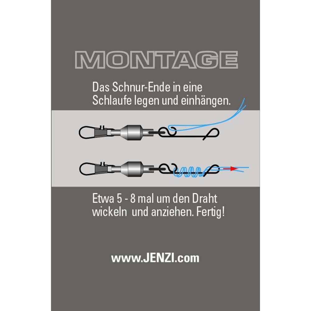 Mit diesem Knotenlosverbinder knüpfen Sie ihre gelochtene Schnur ohne Knoten an das Vorfach bzw. den Wirbel. Damit erhalten Sie die Tragkraft der geflochtene Schnur, die sonst bei Knoten beeinträchtigt wäre. Es gibt diese Verbinder in drei Größen von 9kg bis 55kg Tragkraft.