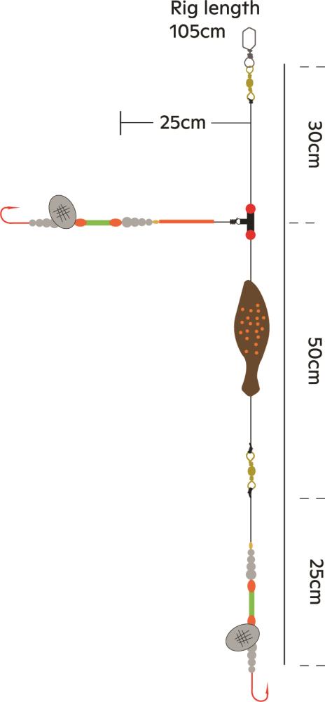 Diese einzigartige Boots- und Uferangel-Montage besteht aus Spinnerblättern und 2 Haken mit austauschbaren Knicklichtern in Kombination mit einem Inline-"Buttlöffel". Es zieht Fische von weit her an!