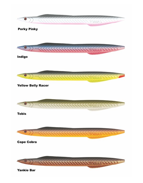Im Wasser ist Tobias eine großartige Imitation eines Sandaals - vielleicht die wichtigste Beute für große Meerforellen, die im flachen Wasser jagen. Mit seiner aerodynamischen Form kann man ihn weit werfen und beim Einholen hat er eine großartige, unregelmäßige Aktion, die Fische von weit her anlockt. In jeder  Packung eines Tobias-Köders ist der entsprechenden Drilling, Sprengringe und Perlen enthalten. Sie brauchen diese noch noch an einer Fluocarbonschnur montieren und schon kann die Jagd beginnen. Es stehen verschiedene Farben und Gewichte zur auswahl.