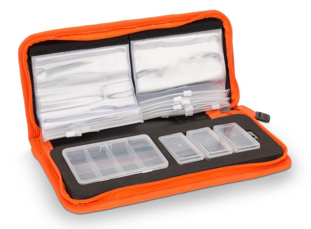 Der Multi Organizer I ist eine flache Tasche mit 3 Kunststoffboxen zur optimalen Aufbewahrung von gebundenen Vorfächern, Montagen und Kleinteilen. Der Multi Organizer II ist eine etwas kleinere Ausführung mit 2 Kunststoffboxen.