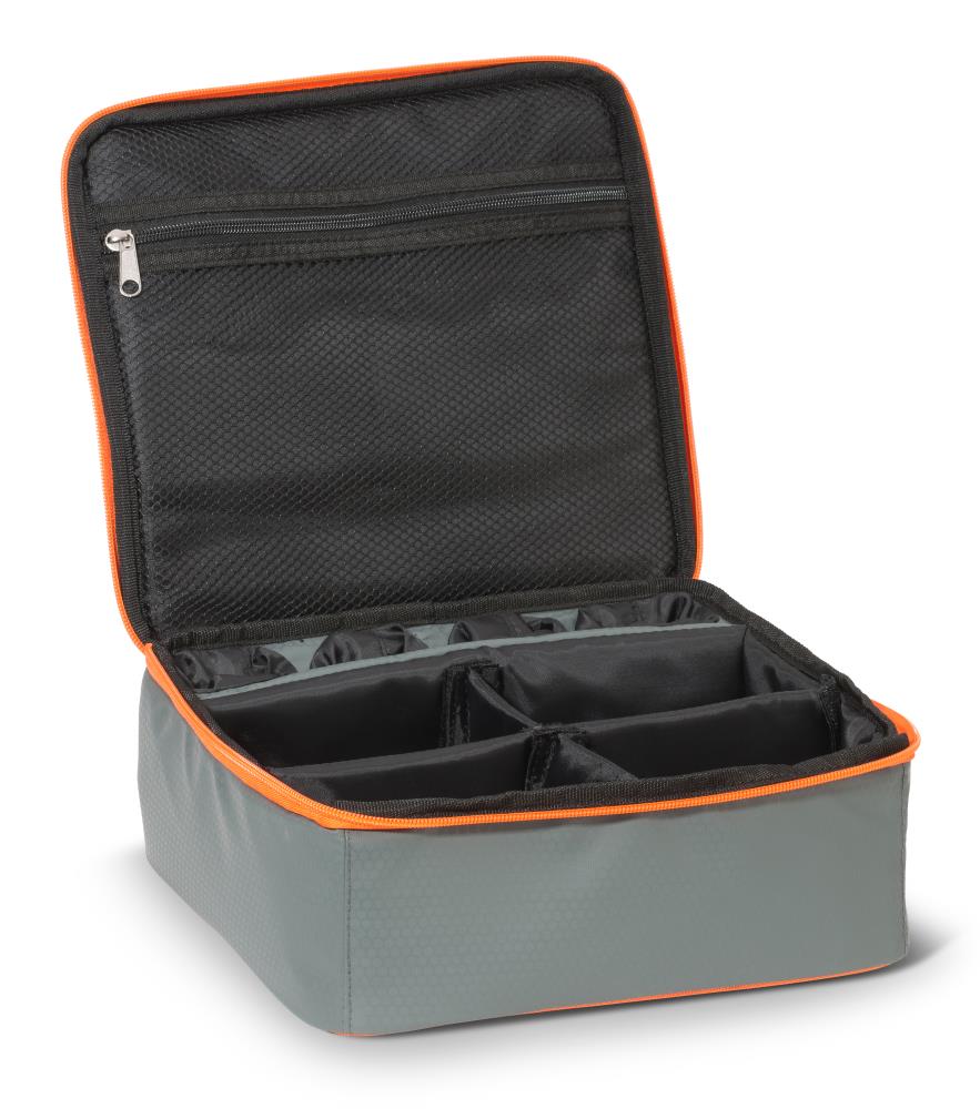 Das Allroundtalent für alle Fälle. Egal ob Lockstoffe, Kleinkram, Rollen mit E-Spulen… Was auch immer geschützt werden muss, findet in dieser Tasche seinen Platz. Der Multi Bag ist außen verstärkt und besitzt einen gepolsterten Tragegriff. Der Innenraum ist mit Trennwänden versehen, die mittels Klett, variabel angebracht werden können. Weiterhin sorgen sechs runde Vertiefungen, sowie eine verschließbare Netztasche ebenfalls für Ordnung.
