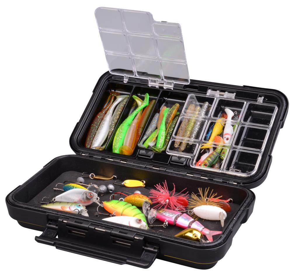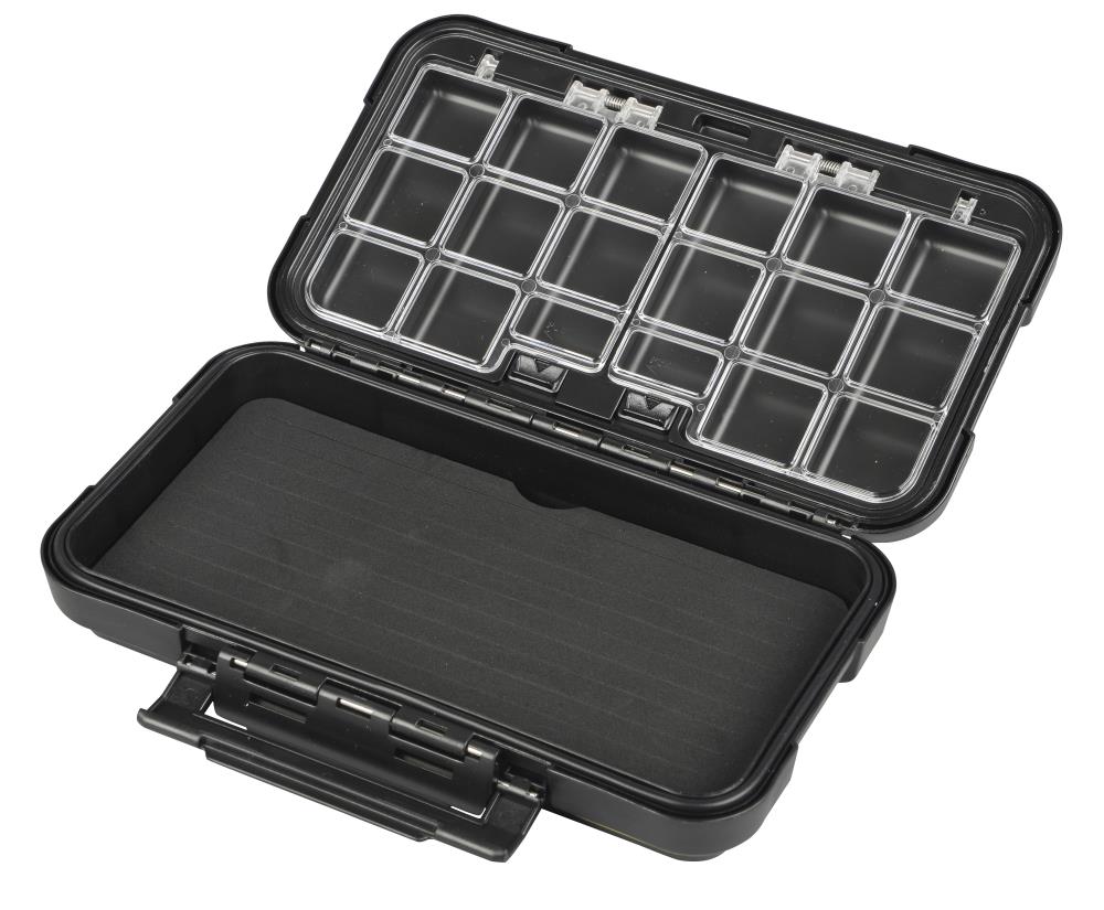 Eine großartige Stocker Box - eine Seite ausgestattet mit EVA Foam mit Schlitzen in denen Stinger, Haken und Micro Köder , kleine Löffel und Jigköpfe gehalten werden. Die andere Seite besitzt 12 einfach zu öffnende Fächer für Kleinteile aller Art.