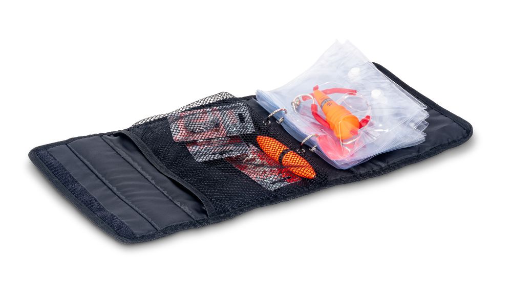 - Sichere Aufbewahrung: Die Tasche verfügt über 10 Klarsichthüllen, die mit Druckknöpfen ausgestattet sind, um deine fertigen Rigs sicher zu halten. Zusätzlich gibt es eine integrierte Netzablage (24 x 17 cm) für das Vorfachmaterial, die eine einfache Organisation ermöglicht.