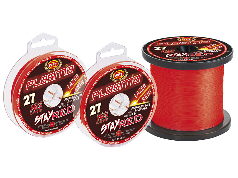 Ein völlig neuartiges Farbsystem sorgt bei der WFT KG PLASMA Stay Red Lazer Skin für eine noch bessere Farbstabilität. Mit unserem neuen UV-stabilen „ROT“ setzten wir wiederholt Maßstäbe. Besonders in Verbindung mit unserer neuen Lazer Skin-Technologie! Diese sorgt für eine superglatte Oberflächenstruktur, wie man sie sonst nur von 8-fach geflochtenen Schnüren kennt. Dadurch konnte außerdem die erreichbare Wurfweite um gut 20 Prozent gesteigert werden! Die Farbe ROT ist besonders beliebt, da sie außerhalb des Wassers gut sichtbar ist. Im Wasser jedoch hat sie keinerlei Scheuchwirkung, da ROT zu den natürlichen Farben im Wasser zählt.