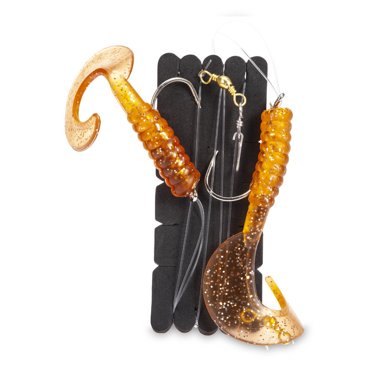 This large twister leader is equipped with a size 4/0 hook. The line has a diameter of 0.80mm. The leader also features an "Extra Strong" sea swivel and is 115cm long. The rig is available in five colors and is ideal for cod, pollock, and pollock.