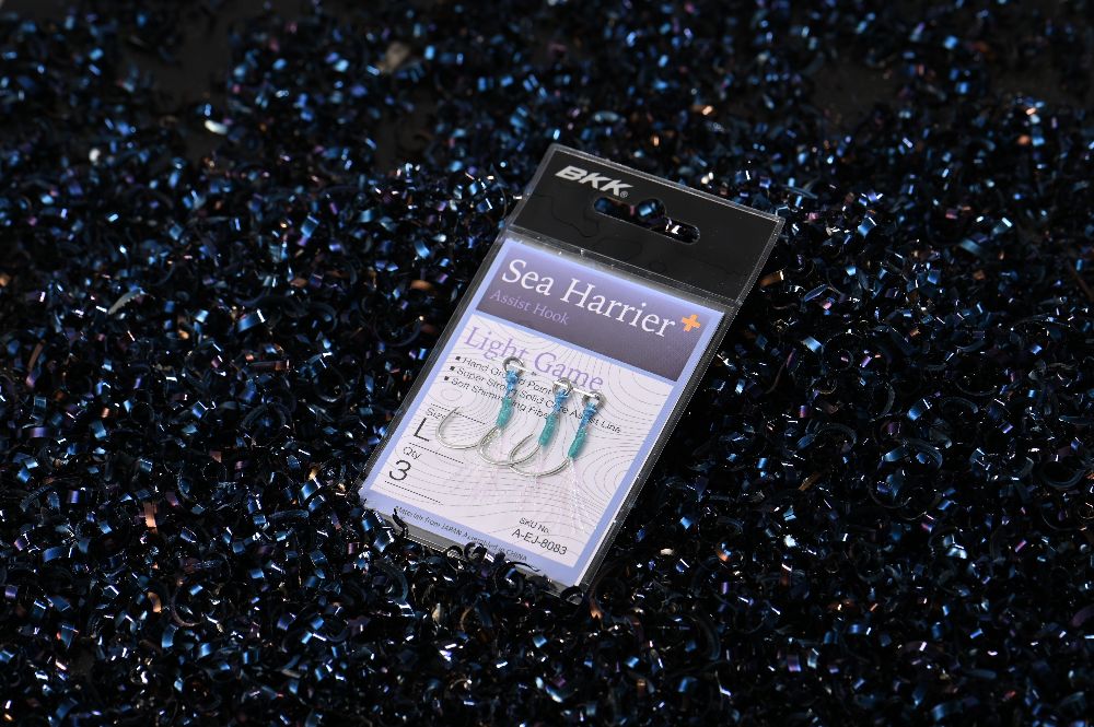 The BKK Sea Harrier+ has been specially developed for light slow jigging applications. This assist hook is designed for use with slow jigs from 10 to 60 grams and comes pre-tied with an extra strong solid core assist cable from BKK, which maintains the correct alignment of the hook and prevents tangles.