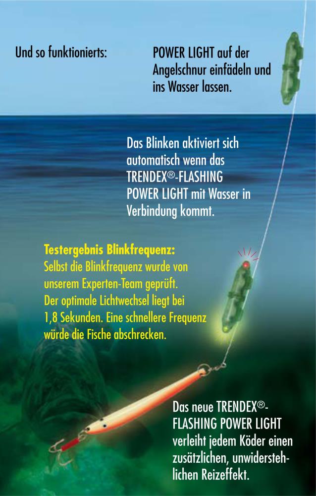 The Flashing Power Lights ensure significantly more catching success. The new TRENDEX®-FLASHING POWER LIGHT gives every lure an additional, irresistible attraction effect. The Behr expert team was out testing this top product in various waters. Everywhere the catch results were above average than without "Flashing Power Light".