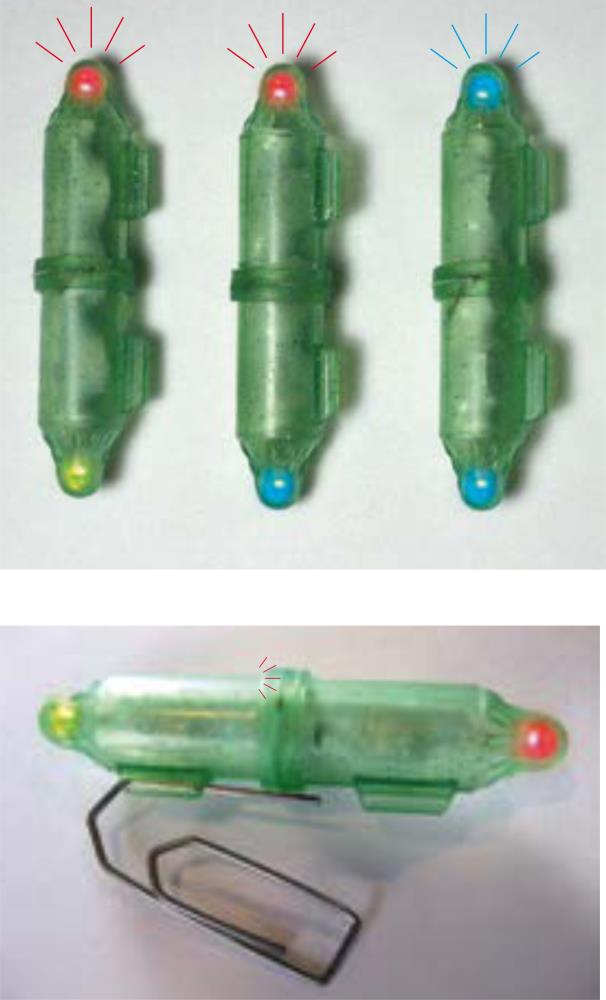 The TRENDEX®-FLASHING POWER LIGHT has a double light/flashing light at the top and bottom, in different flashing colours. The flashing is activated automatically when the part comes into contact with water.