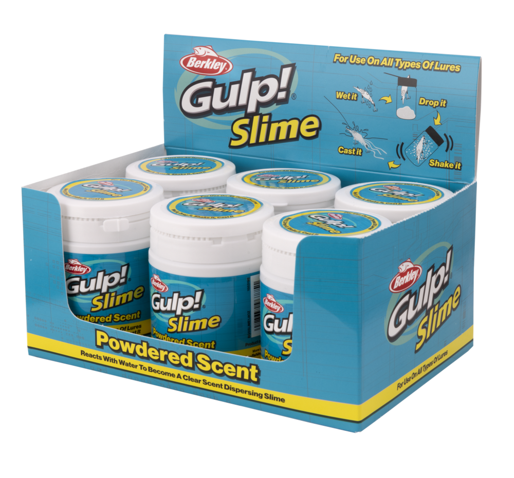 Berkley® have been able to package all the active scent and taste components that make Gulp!® so effective into a new dry powder attractant that can be applied to any lure. The process to apply the scent is straightforward: wet your lure and drop it into the Gulp!® Slime container of dry powder, then gently close the lid, give it a shake and cast. It’s that simple. Once in the water the powder attached to your lure rapidly turns into a clear slime that disperses the Gulp!® scent formula in a fish attracting scent trail like no other. Your Fish. Our Science. It’s what the people in white coats do best at Berkley®.