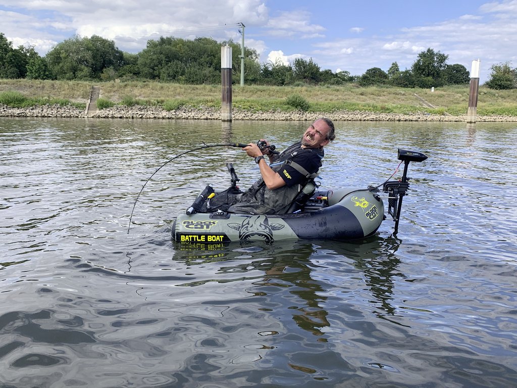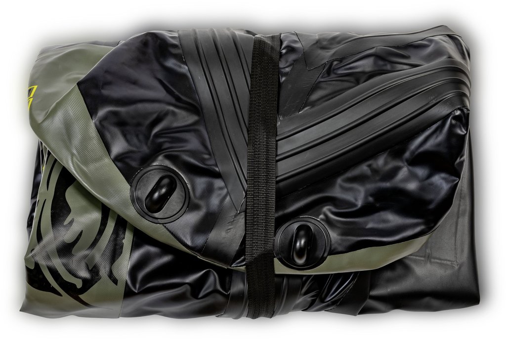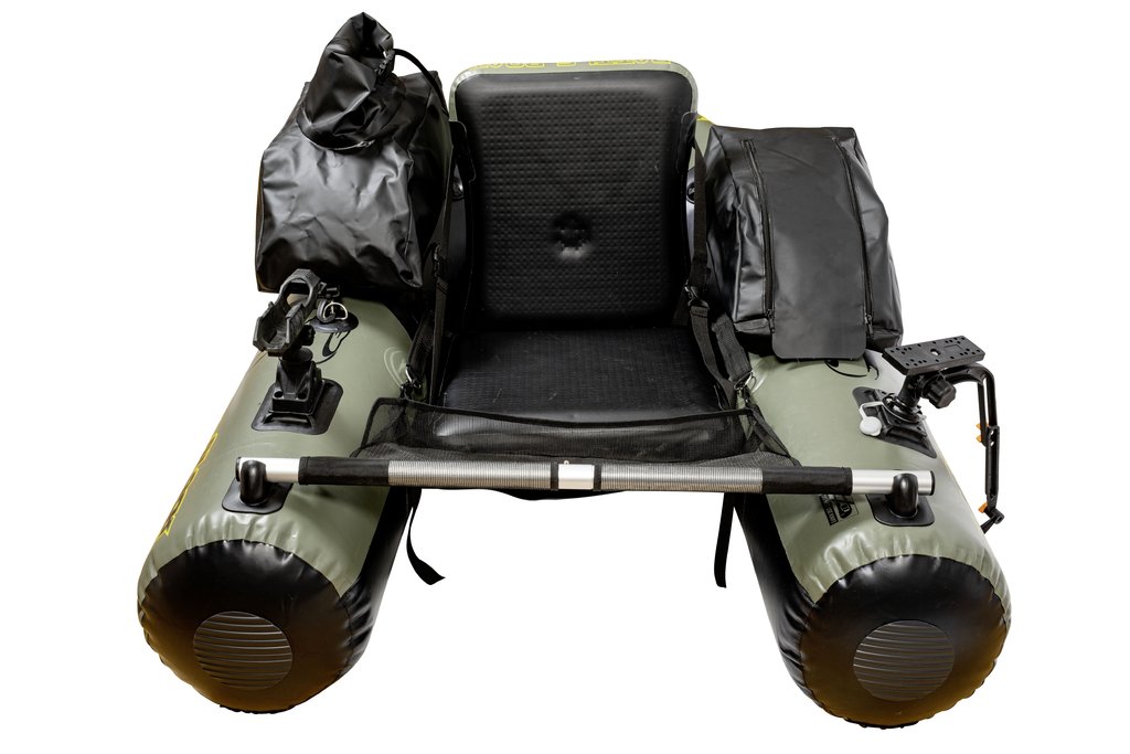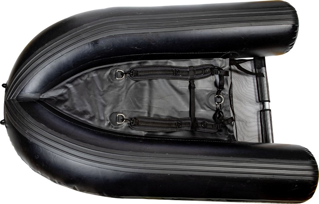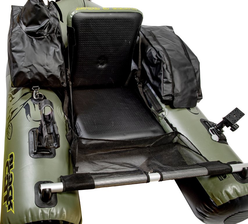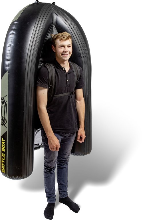 A bellyboat of the highest quality awaits you. The brand new Black Cat Battle Boat is made of extremely durable PVC material, which is optimally protected against stones and rough subsurfaces on the underside and on both ends via extra-wide protective strips. Now, not only can you store your belly boat upright, you can also drag it over the last few metres from the car to the water. The particularly low, slightly angled seat offers maximum comfort and safety. Ultra-practical: two strap mountings for your rods are nicely integrated. The Battle Boat is equipped with everything you need: besides a bag for your tackle boxes, it also comes with two completely waterproof bags for batteries, cameras, fishing licences, etc. Pre-installed with a robust rod holder, a well-designed fishfinder mounting and, best of all: a transom for attaching an electric motor. The Battle Boat is the perfect all-in-one package, ready and waiting to take you on your next angling adventure.