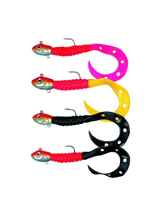 This cod cracker is a successful bait for cod and halibut. This twister set has already been pre-assembled for quick use in salt water. The field of application ranges from cod to coalfish. Delivery includes spare tail. Four catching colours with four different weights are available.