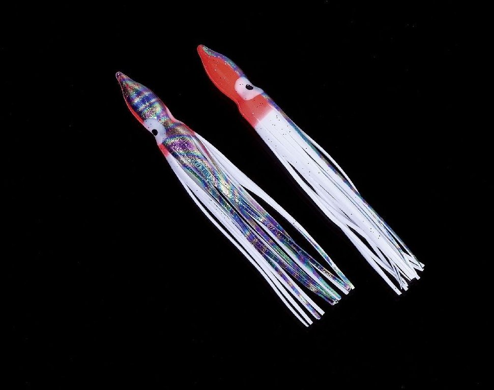 These loose 12cm long octopuses are available in three different colours. They are covered on one side with a holographic foil, which gives them a shimmering effect. They are therefore ideal for tuning rigs or pirks.
