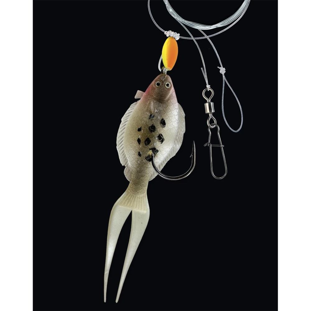 - Rubber fish in the shape of a flounder: The realistically designed rubber fish imitates natural prey and effectively attracts predatory fish. Its shape and movements in the water increase the chances of a bite.