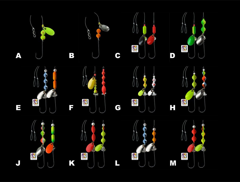 These leaders are ideal for butt-spoon assemblies, which are fished as a trailing system. There are 12 different models with a length of 35cm or 70cm. The hook size is 1 or 2 and the line has a diameter of 0,35mm or 0,40mm.