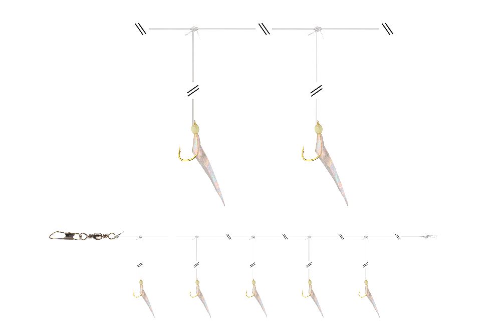 - Real fish skin and glow head: The classic herring rig is equipped with real fish skin (glow only) for added attraction. The glow head increases visibility and attracts herring even in murky waters.