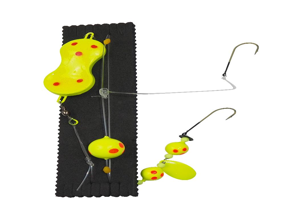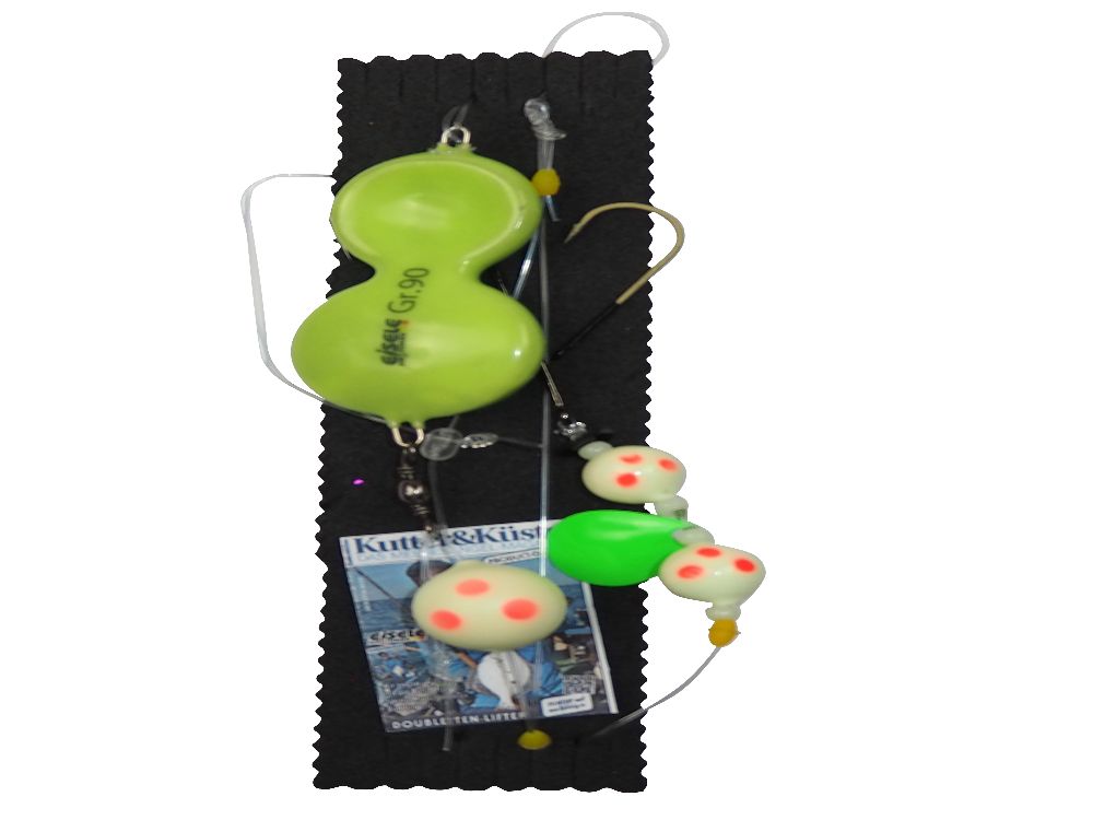 The Doubletten-Lifter is equipped with a 120g flounder spoon (lead-free) and uses size 3/0 Teflon hooks. It also includes the original Lil-Corky, which provides extra buoyancy. The line has a diameter of 0.60 mm, which provides additional stability and reliability.