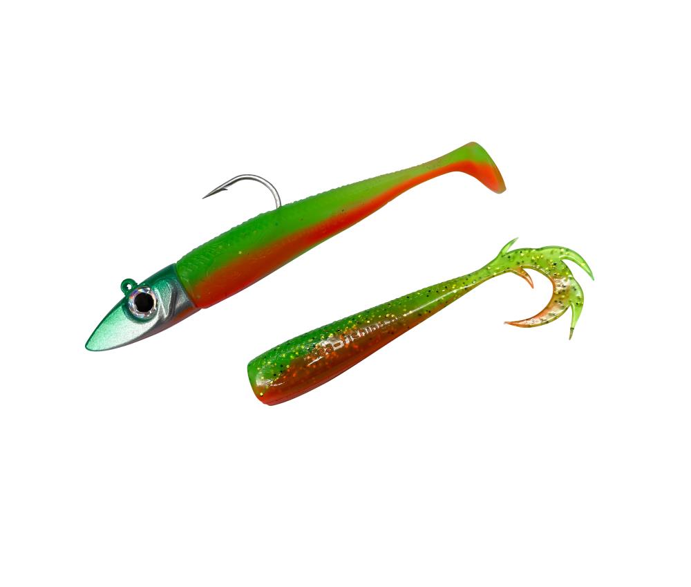 The Softlure Flexxxi Mini is Made in Germany. It is super soft, extremely durable, without toxic softeners, easy to float and available in many success colours and two weights. Success is a matter of head! It is mounted on an Eisele Twitcher jig head - The Dancer! A tinned VMC Carbon Jig hook 60° and a 3D XL eye are used. Included in each pack is a pre-rigged shad with paddle tail and a replacement body with dragon tail.