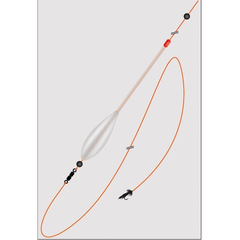 Ready-made combo with spirolino for fly fishing with your reel or spinning equipment. Due to the weight of the float, you cover a larger area than with conventional fly fishing. The set consists of spirolino (25g), 2m ready-made flourocarbon leader line 0.25mm, rubber beads, double swivel and three flies. This is an incredibly effective method of fishing for sea trout and rainbow trout!