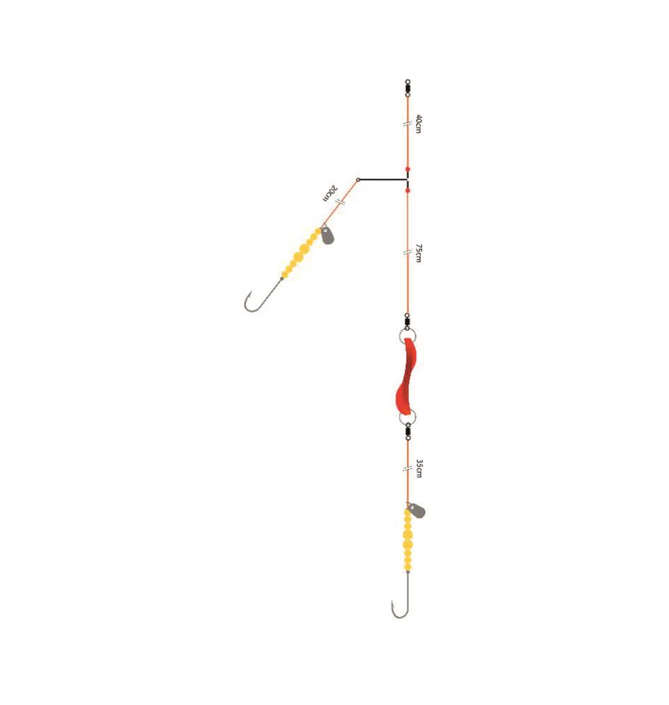 This is a ready tied and ready to use leader with butt spoon, boom and pearls. Weights from 40g - 120g are available. The leader is 150cm long and has a thickness of 0.55mm/0.50mm. The side arm is 20cm long.