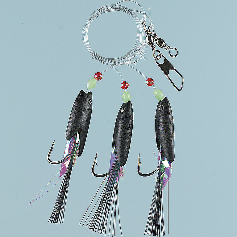 This rig has three hooks size 3/0 or 6/0. The rig of the size 3/0 is for mackerel and cod and the size of 6/0 for cod and saithe suitable.