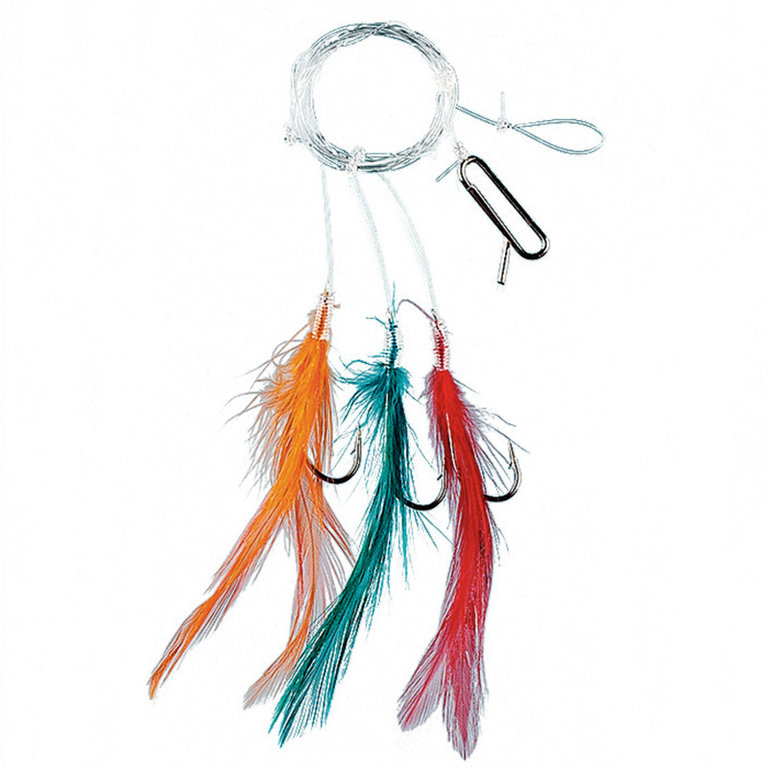 This rig assortment consists of six different rigs, 2 of each rigs are included. The rigs have a hook size of 2/0 or 3/0 and are therefore ideal for catching cod and mackerel. The line thickness of the leaders is 0,60mm. Here you get 12 rigs for a top price.