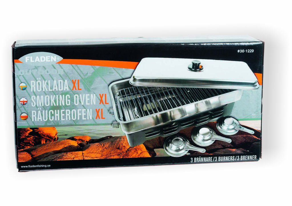 This table smoking oven by FLADEN is especially generously constructed. It offers more space than the traditional table smokers with only two burners. Thus, it is possible to smoke larger fish in the whole. It has two gratings, so that the fish can be smoked in two layers at the same time. The three burners distribute the heat evenly. In the lid is the flue integrated, which regulates the amount of smoke by means of slide. The smoker has two closure clips on the side. This allows the lid to be securely closed. The generous dimensions of this table smoker are 50x24x18cm. The dimensions of the smoking tub are 47x21x9cm.
