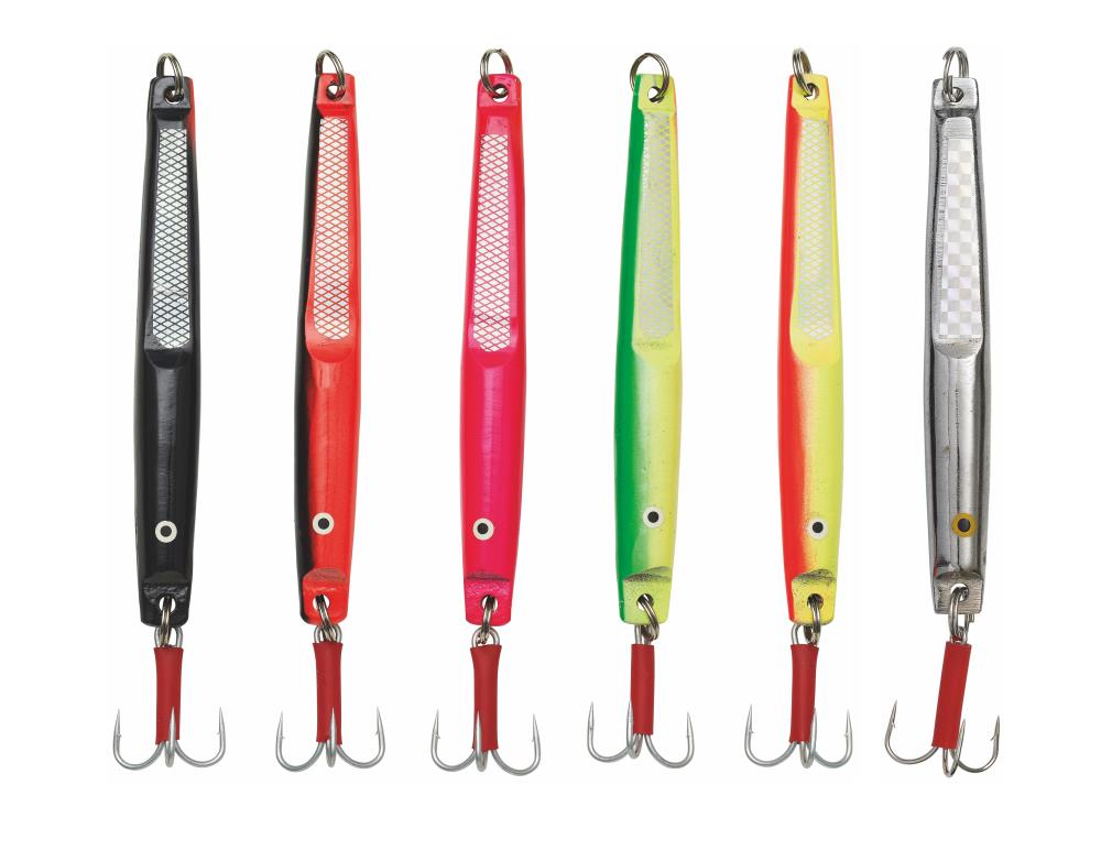 Kinetic Miljøpilken is a non-lead pilk in a well-tried, effective shape that wiggles and moves to attract the fish. All 8 weights have a holographic sticker on the body and a red tube attached to the hook for even more efficiency.