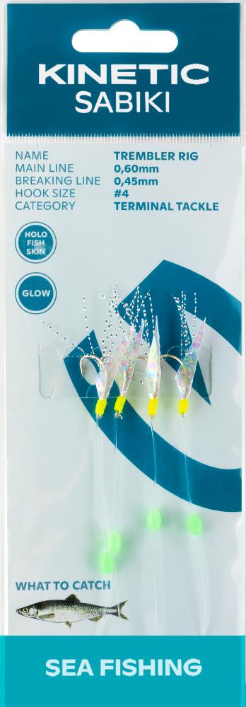 Kinetic Sabiki's Trembler Holographic fish skin with flash fibres is the perfect leader for those targeting herring, mackerel or other smallmouth fish in shallow water.