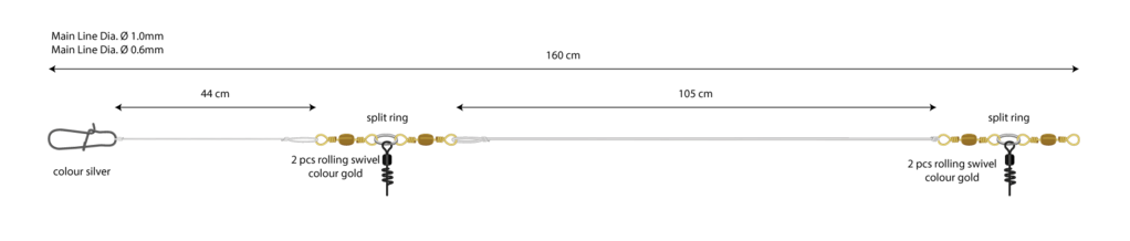 The basic system can be used freely with different baits. It has a 1.00 mm thick main line and a 0.6 mm diameter abrasion point. It is combined with natural bait systems. It works best in waters 50 m to 100 m deep. The basic leader is made for fishing for tusk, ling, saithe and cod.