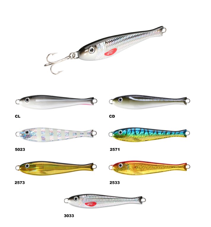 Large pirks weighing 500g and 700g for deep sea fishing. They are equipped with strong, sharp VMC treble and extremely durable split rings. This classic shape with a distinctive action is available in seven different colours.