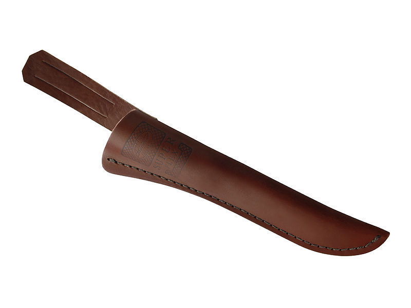 To combine nature and high-tech, the Finns always succeeds. In this Marttiini filleting knife, the handle is made of heat-treated, waxed birch wood. The so-called Super Flex blade is stainless and proves to be extremely flexible. The knife comes in a brown leather sheath with belt loop.