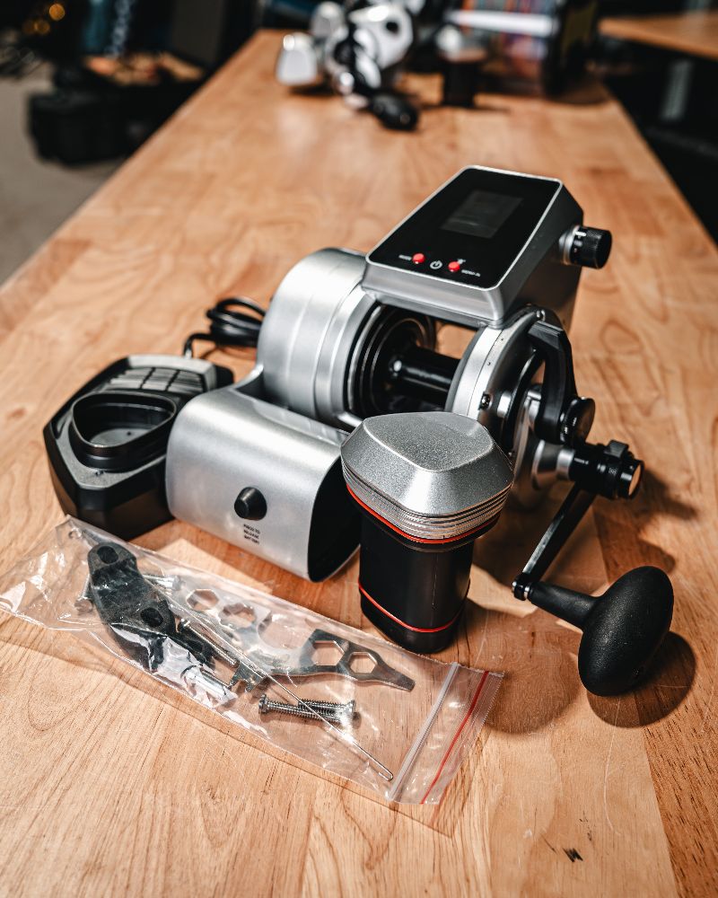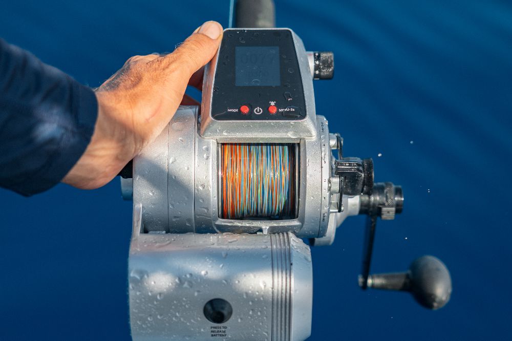 - Additional safety features: The spool tension regulator prevents overruns when the reel is in free spool, and the IPX6-rated motor and battery compartment ensures durability and reliability. A backup handle can be activated at the touch of a button.