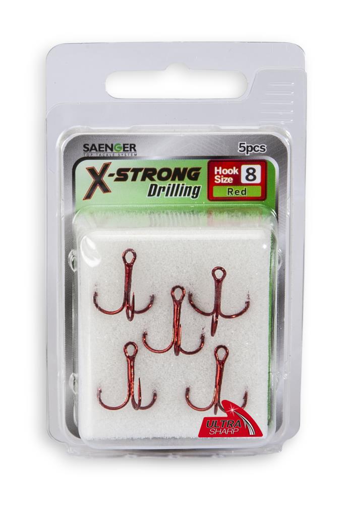 Product information "SAENGER X-Strong Treble Hooks Red Size 8"