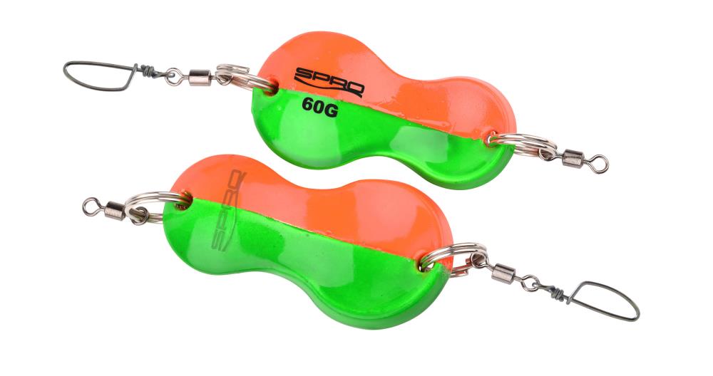 These butt spoons are available in different colours and weights. In addition to the usual snap rings, there is a swivel at the top end and a swivel with a hanger at the bottom end. This means you only need to attach your trailing leader.