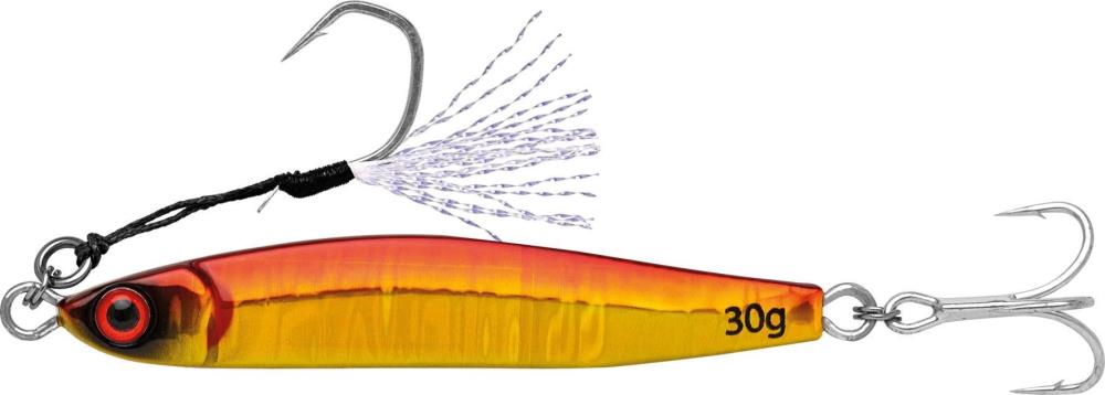 The Gomoku Trick Metal is a highly versatile jigging lure that features a wide tail kicking action. The asymmetric body design gives it a tricky action on the fall which triggers those hungry predators to bite! The Gomoku Trick Metal is rear weighted for long casts and a fast descent. Rigged with VMC® dressed assist hook & rear treble hook.