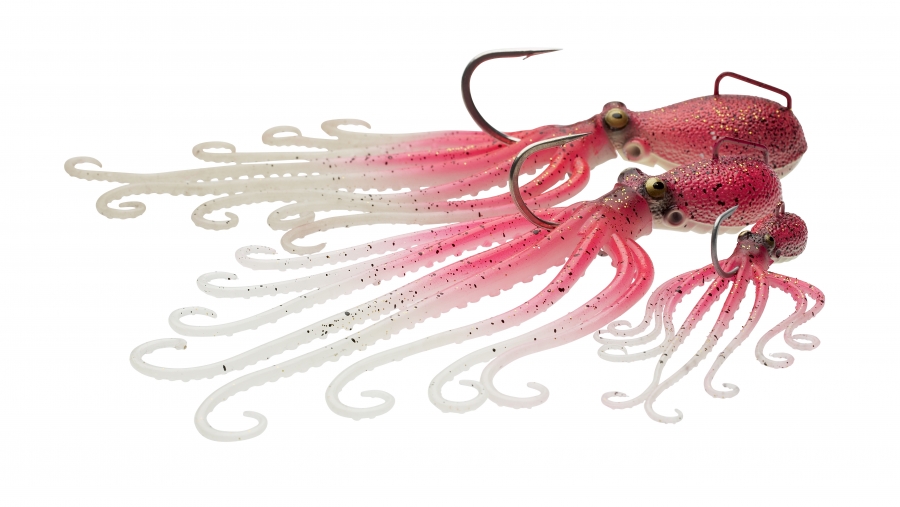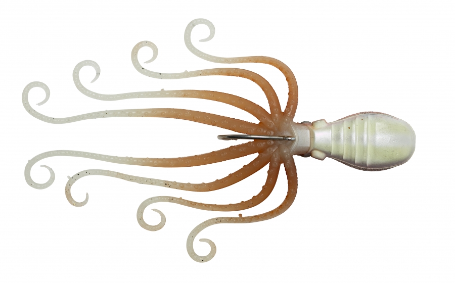 The Super Glow paint and skirt along with a built-in rattle chamber and bubble catch, the 3D Octopus hits every visual, auditory and sensory points that triggers feeding and aggression from predator fish. Built Tough with extra heavy-duty hardware, the 3D Octopus is designed to take on the most Savage predatory game fish on the ocean floor.