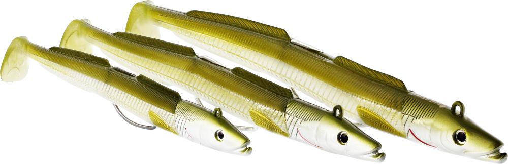Sandy Andy Weedless Jig has an ultra-realistic sandeel design based upon our legendary Sandy Andy Jig. This weedless version has been specially designed for saltwater species, particularly seabass. This slim and weedless lure offers you a lot. Fish it from the shore or boat fast or slow, on a steady retrieve or jigged amongst bottom structure. The slim body and small paddle tail work at any speed, creating that strike-triggering swimming action. Our improved fast-attach-system, with a micro stainless-steel plate, ensures a secure connection and allows the body to be changed in seconds. The attention to detail throughout the lure will fool any seabass out there. Rigging: Press the soft body onto the jighead, ensure the grip holder goes into the upper hole and the hook eyelet goes into the lower hole, mount the hook on the head with a firm grip so it “clicks”. Insert the hook through the small vertical hole and let it rest in the hook slot on the back. Apply one drop of super glue between the head and soft body, press together and you are ready to go!
