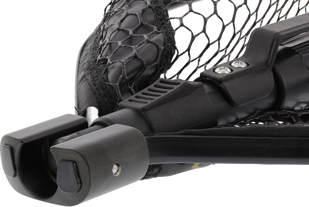 Be ready in seconds and land big fish safely with the W3 C&R Adjustable Landing Net. This lightweight and innovative net folds down for compact storage and extends for added reach. It opens easily with one hand and one swing, and it stays locked in position until the push button is engaged to fold it back up. A rubberized, tangle-free mesh is gentle on the fish, reducing damage to scales and minimizing slime loss. Big mesh on sides and smaller on bottom ensure minimal resistance in the water.